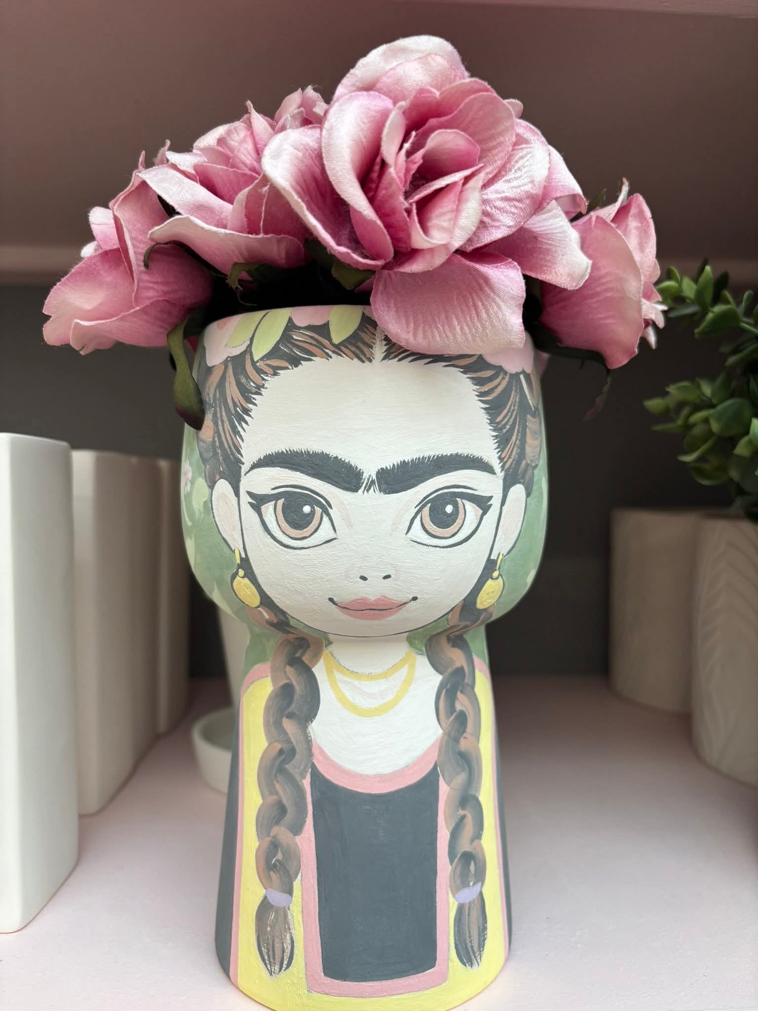 Hand Painted, beautiful young Frida Kahlo vase. Each order will be lovingly created by myself and glazed making it a truly unique gift.