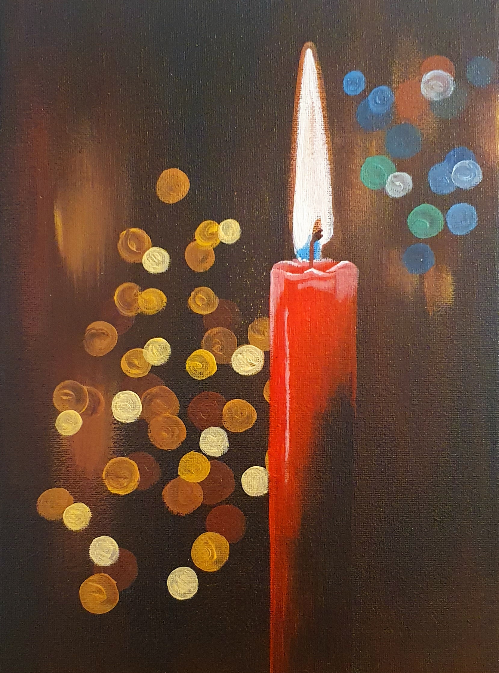 BYOB to this artist lead workshop and paint this beautiful candle image on canvas . All equipment supplied and beginners welcome.